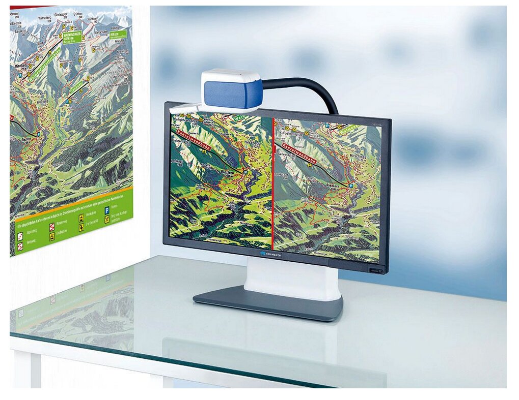 vielseitige Vergrößerung, kontraststarke Farbmodi und eine benutzerfreundliche